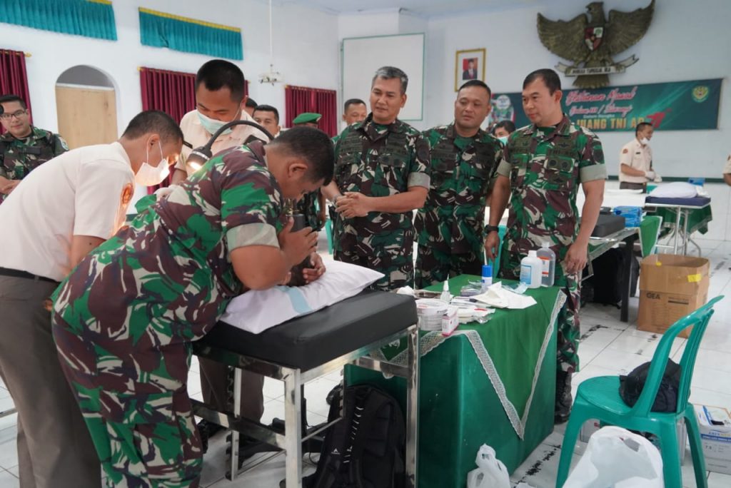 Setelah peninjauan ke tempat acara khitanan massal, Pangdam selanjutnya meninjau donor darah yang diikuti oleh 119 orang. Kemudian menyerahkan bantuan sosial berupa 500 paket sembako kepada warga masyarakat sekitar.