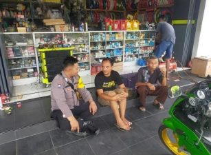 Patrol untuk memastikan tidak ada tindak kriminalitas selama malam hari di bengkel motor, Minggu (02/07/2023).
