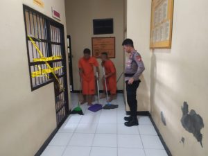 Anggota Sat Tahti Polres Banjar dan Petugas Jaga Tahanan Sat Samapta melaksanakan pengawasan giat korve dan bersih-bersih. Di ruang tahanan Rutan Polres Banjar, para tahanan membersihkan ruangan dengan menyingkirkan barang-barang yang tidak perlu. Selanjutnya menyapu dan mengepel lantai ruang tahanan oleh sebanyak 15 orang tahanan.