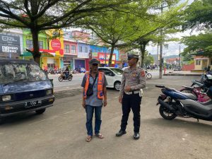 Briptu Risan menyampaikan himbauan kamtibmas kepada beberapa orang petugas parkir terkait TPPO (Tindak Pidana Perdagangan Orang) yang bertempat di Taman Kota Banjar Kelurahan Banjar Kecamatan Banjar Kota Banjar.