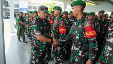 KODAM III/SLW-MABES TNI || suaralintasindonesia.com – Pangdam III/Siliwangi Mayjen TNI Kunto Arief Wibowo, S.I.P., melepas keberangkatan 450 personel Satgas Pamtas RI-PNG Statis Yonif 310/KK yang dipimpin oleh Dansatgas Letkol Inf Andrik Fachrizal. Kegiatan dilaksanakan di Lapangan Moeljono Silam Kolinlamil, Jalan Raya Pelabuhan Tanjung Priok, Jakarta Utara, Minggu (09/07/2023).