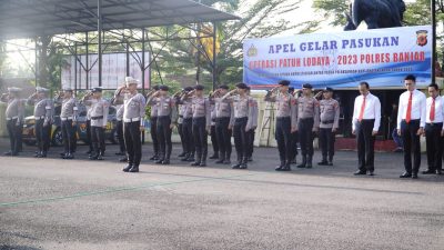 Kapolres Banjar AKBP Bayu Catur Prabowo, S.H.,S.I.K.,M.M. memimpin langsung Apel Gelar Pasukan tersebut.