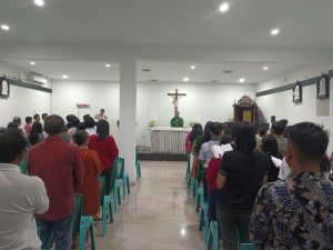 Pendeta Albertus Gatot H memimpin 88 jemaat untuk peribadatan dengan tema “Marilah Kepada-Ku, kamu semua yang letih lesu dan berbeban berat, Aku akan memberikan kelegaan kepadaMu”.
