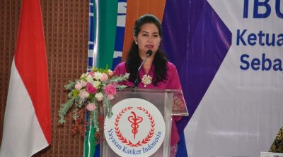 Mia Kunto Arief Wibowo dalam sambutannya menyampaikan terima kasih kepada Ketua Umum Yayasan Kanker Indonesia (YKI) atas kepercayaannya untuk mengangkat sebagai Pelindung Yayasan Kanker Indonesia Cabang Koordinator Jawa Barat.