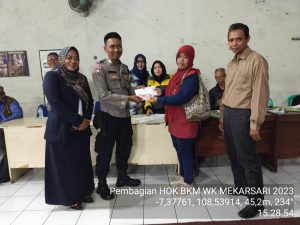 Bhabinkamtibmas Kelurahan Mekarsari Bripka Eka Setiawan.,SH Polsek Banjar Polres Banjar Polda Jabar melaksanakan kegiatan rutin sambang, silaturahmi, dan menghadiri pembagian pembayaran upah rutilahu tahun 2023 kepada penerima manfaat sekaligus memberikan himbauan kamtibmas terkait TPPO (Tindak Pidana Perdagangan Orang) kepada beberapa orang warga yang hadiri bertempat di Aula Kelurahan Mekarsari Kecamatan Banjar Kota Banjar.