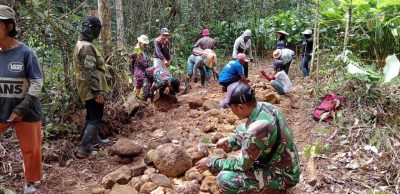 “Dengan dibukanya jalan tani maka akses jalan menjadi lancar, khususnya untuk sepeda motor yang digunakan masyarakat dalam mengangkut hasil panen dari ladang ke perumahan penduduk”, ucap Dansatgas.