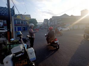 ” Petugas secara humanis mengatur arus lalulintas pagi hari, mengingat pada jam tersebut merupakan jam sibuk arus lalulintas padat, ” ucap Kasat.
