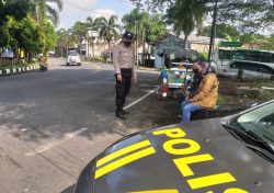 Personil Unit Lalulintas Polsek Banjar Lakukan patroli Di jalan raya himbau petugas parkir antisipasi Curanmor