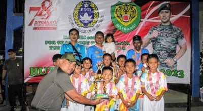 KODIM 0612/TSM-KOREM 062/TN-KODAM III/SLW || suaralintasindonesia.com – Dalam rangka memperingati HUT RI ke-78 Tahun, Kodim 0612/Tasikmalaya menggelar turnamen kelompok usia dini yang diikuti puluhan sekolah sepak bola (SSB) di wilayah kota Tasikmalaya.