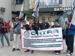 KOTA TANGERANG || suaralintasindonesia.com – Puluhan massa aksi yang tergabung dalam Garda Aktif Tangerang (GATRA) melangsungkan Demonstrasi di depan PT. Fefi Plastik, pabrik pengolahan biji plastik yang berada di jalan lmam Bonjol, gang Kramat Kelurahan Sukajadi, Kecamatan Karawaci, Kota Tangerang, Kamis 5 Oktober 2023.