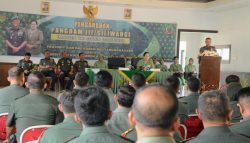 Pangdam dalam arahannya kepada para prajurit, PNS dan anggota Persit jajaran Korem 062/TN menguraikan tentang pelaksanaan tugas perbantuan pada pengamanan Pemilu 2024 kepada Pemda dan Kepolisian termasuk menekankan tentang netralitas TNI pada Pemilu 2024.