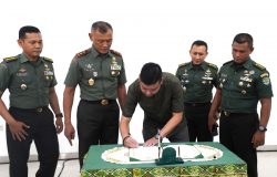 Pangdam III/Slw bersama Christian Wibisono selaku Direktur PT Arkarega melakukan penandatanganan Berita Acara Serah Terima (BAST) penerimaan Mesin Pengeboran Air, dilanjutkan dengan penyerahan barang secara simbolis berupa Mata Bor dari Direktur PT Arkarega kepada Pangdam III/Slw.