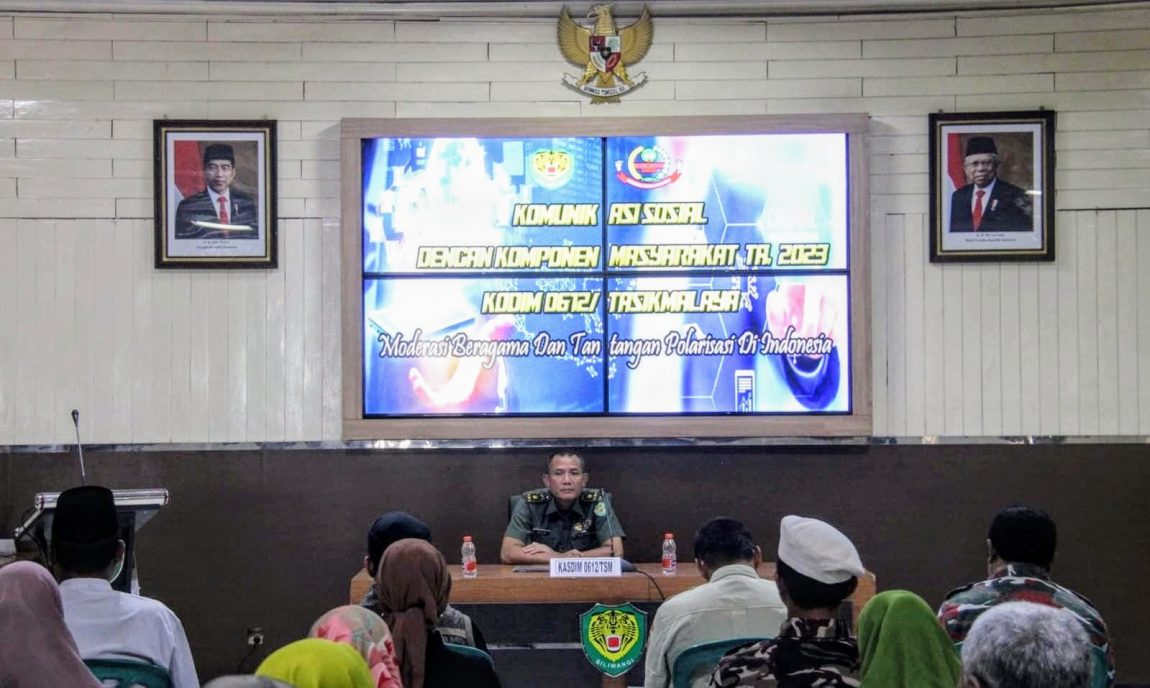 KODIM 0612/TSM-KOREM 062/TN-KODAM III/SLW || suaralintasindonesia.com – Bertempat di Aula Makodim 0612/Tasikmalaya Dandim 0612/Tasikmalaya yang di wakili Kasdim 0612/Tasikmalaya Mayor Inf Deni Zenal Mutaqin, S.Sos memimpin kegiatan komunikasi sosial (komsos) dengan komponen masyarakat yang dihadiri 80 orang.