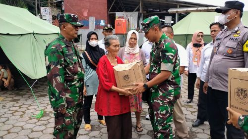 Bantuan Paket Sembako dari Pangdam III/Slw Mayjen TNI Erwin Djatniko disalurkan oleh Komandan Kodim 0610/Sumedang Letkol Kav Christian Gordon Rambu M.Si.(Han)., kepada warga yang terdampak bencana gempa bumi.