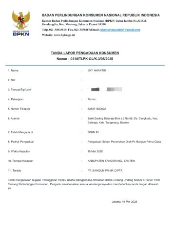 PT. Bangun Prima Cipta Dilaporkan ke BPKN RI, Diduga Langgar Hak Konsumen Perumahan di Kabupaten Tangerang