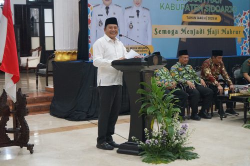 SIDOARJO | Suaralintasindonesia.com –Bupati Sidoarjo, H. Subandi, secara resmi melepas keberangkatan jamaah haji Kabupaten Sidoarjo kloter 93 di Pendopo Sidoarjo, Rabu (28/5)malam. Pelepasan kali ini merupakan pelepasan keempat kalinya yang dilakukan di Pendopo dan menjadi yang terakhir dari lokasi tersebut sebelum seluruh jamaah haji diberangkatkan menuju Asrama Haji Sukolilo Surabaya.