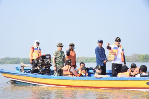 Tiga perahu digunakan bupati beserta rombongan. Hampir satu jam perjalanan dari sungai Kalitikung hingga muara Curah Ombo untuk melihat lebih langsung kondisi ribuan hektar tambak yang telah hilang tersebut.