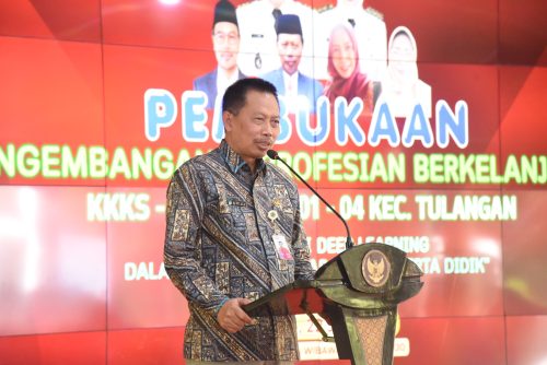 SIDOARJO | Suaralintasindonesia.com -200 orang lebih guru SD dan kepala sekolah SD se Kecamatan Tulangan ditingkatkan SDM nya. Pagi tadi, mereka mengikuti kegiatan Pengembangan Keprofesian Berkelanjutan/PKB di Pendopo Delta Wibawa, Selasa, (22/7). Seharian penuh, para guru dan kepala sekolah SD yang tergabung dalam Kelompok Kerja Kepala Sekolah/KKKS dan Kelompok Kerja Guru/KKG di Gugus 01-04 Kecamatan Tulangan itu mendapatkan materi deep learning atau pembelajaran mendalam. Materi disampaikan Kabid Pendidik dan Tenaga Kependidikan Dinas Pendidikan dan Kebudayaan Sidoarjo Slamet Riyadin.