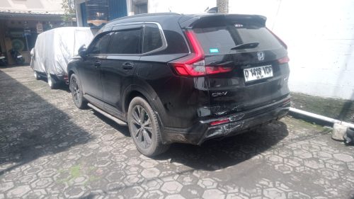 Menurut Nana, saksi di lokasi kejadian, “Kendaraan CR-V rem mendadak dan motor menabraknya, lalu disusul oleh Honda Brio, mengakibatkan kendaraan roda dua rusak parah.”