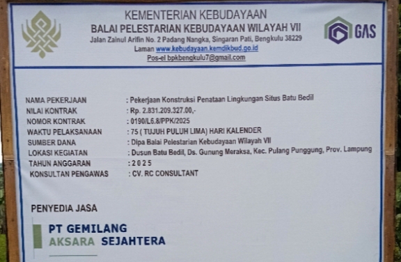 Telan Anggaran nyaris Rp 3 Miliar, Proyek kontruksi Penataan Lingkungan di Duga Rusak Situs Cagar Budaya Batu Bedil di Tanggamus.