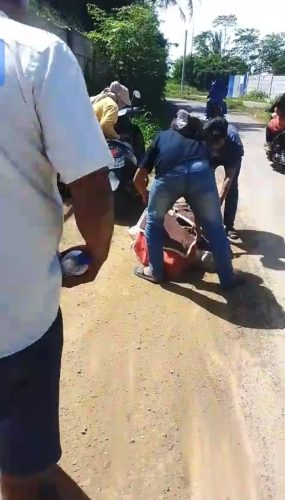 Dalam kejadian hari ini, korban terjatuh dan mengalami luka-luka. Warga segera memberikan pertolongan dan mengamankan korban serta kendaraannya dari tengah jalan.