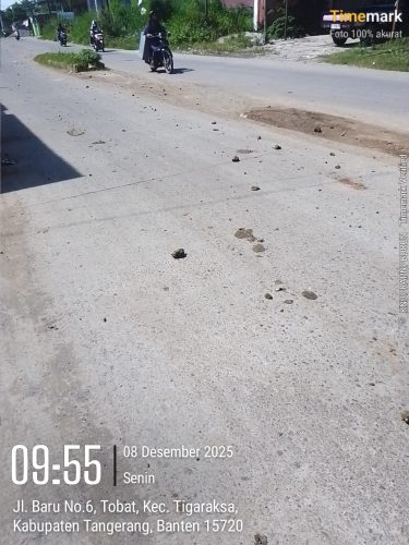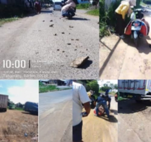 Kabupaten Tangerang | suaralintasindonesia.com – Seorang ibu pengendara sepeda motor mengalami kecelakaan tunggal di Jalan Baru Pasar Sentiong, Kampung Paku Haji, RT 02 RW 06, Desa Tobat, Kecamatan Balaraja, Kabupaten Tangerang, Senin (08/12/2025). Kecelakaan terjadi akibat kondisi jalan yang licin karena banyaknya tanah berceceran yang mengotori badan jalan.